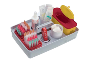 Coloque al paciente en una posición en la que se encuentre cómodo y se tenga acceso a las venas. Verifique que la identificación en los contenedores es la correcta y siga el orden sugerido para la toma.