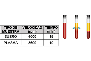 Cuando se requiera suero o plasma, se debe separar el paquete eritrocitario mediante centrifugación y transferir en un tubo de plástico estéril correctamente identificado.